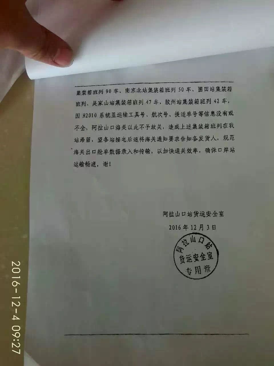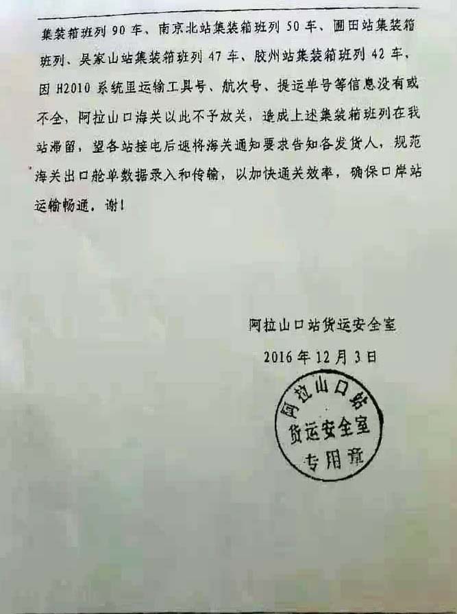 另外,各地班列陸續(xù)發(fā)車,造成新疆沿線堵車,致使從啟運地到口岸的鐵路運輸時間也不能保證,請知悉!