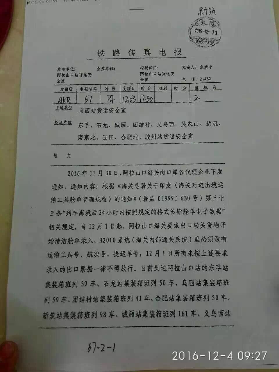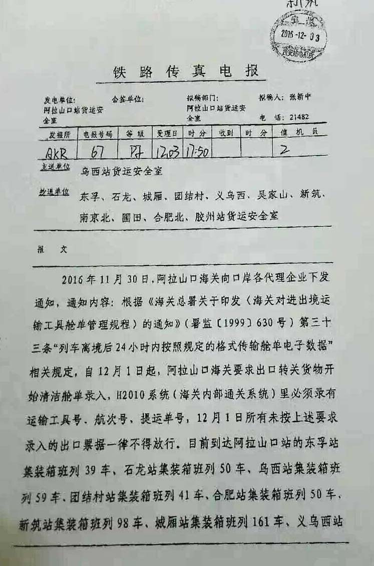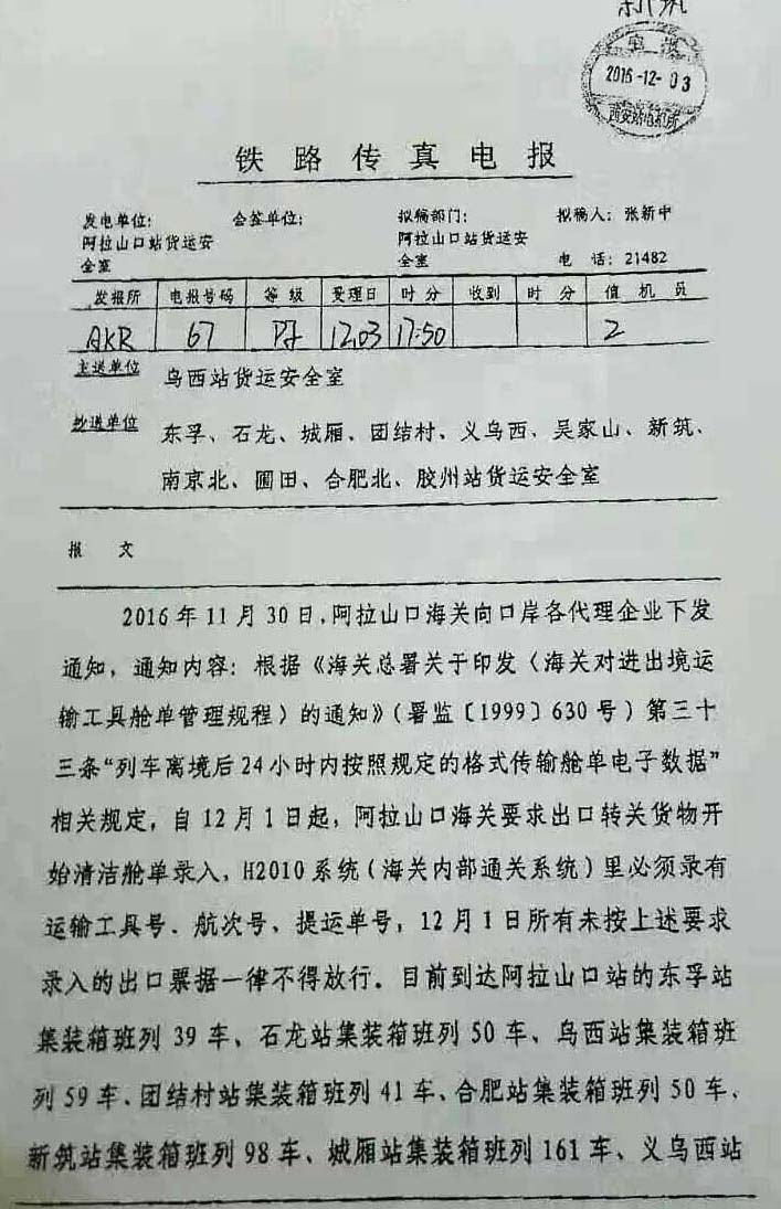 而各地陸續(xù)發(fā)運的鐵路班列,為保證運輸效率,發(fā)運地采用先報關(guān)后裝車方式,造成轉(zhuǎn)關(guān)單不符合口岸海關(guān)要求,因此導(dǎo)致阿拉山口口岸貨物大量滯留,截至發(fā)稿已逾1000車,只能采用人工補錄放行的處理方式,擁堵或?qū)⒊掷m(xù)較長時間。