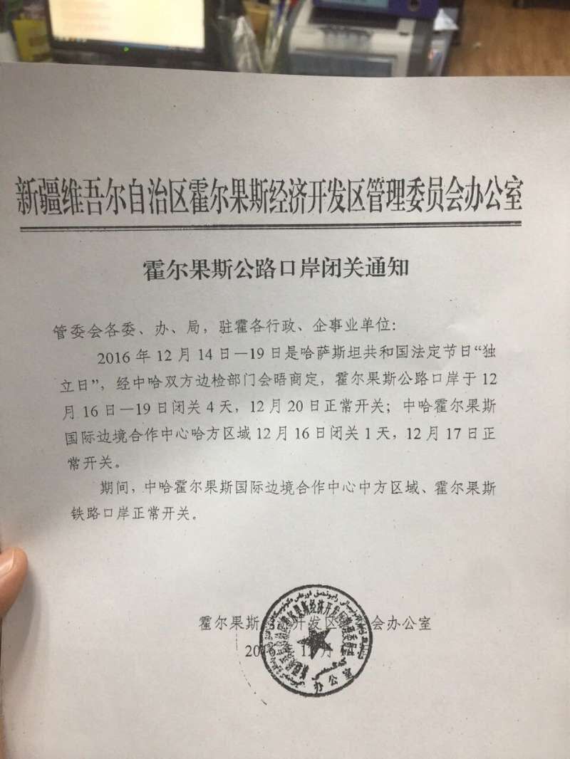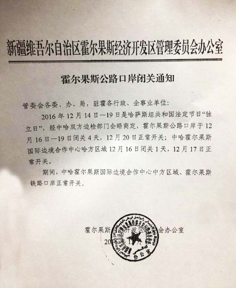 霍爾果斯公路口岸閉關(guān)通知