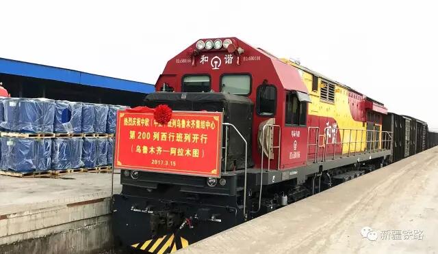 2017年3月15日下午17時(shí)許,X9081次貨物列車從中歐(中亞)班列烏魯木齊集結(jié)中心始發(fā),駛向哈薩克斯坦阿拉木圖,這是中歐(中亞)班列烏魯木齊集結(jié)中心自2016年5月投入運(yùn)營(yíng)后開行的第200列西行班列。
